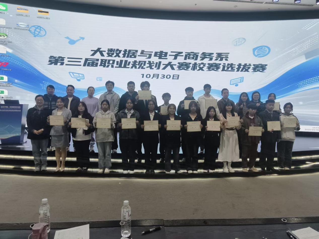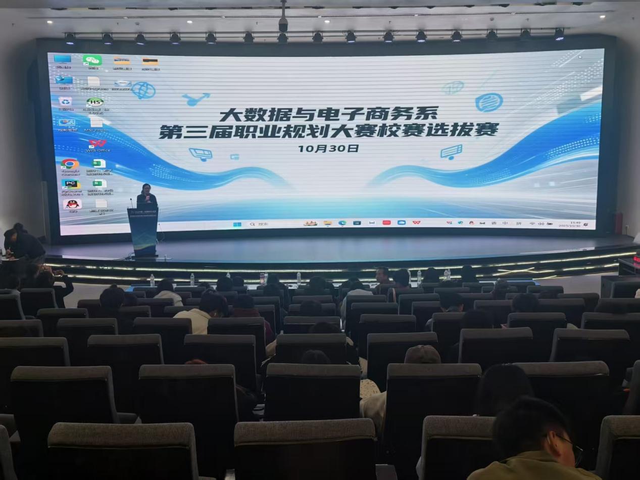 2025年10月30日下午,大数据与电子商务系在知行楼学术报告厅举办第三届职业规划大赛校赛选拔赛。选拔赛分为成长赛道、就业赛道,各赛道分设金奖1名,银奖3名,铜奖6名,金奖获得者、银奖获得者进入校赛。