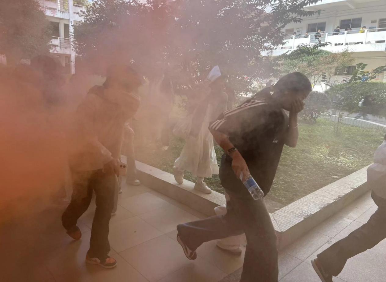 为全面落实学院相关要求,提高全系师生面对火灾突发事件的安全意识,增强自防自救能力,掌握相关安全知识,确保在险情面前能够选择正确的自救、疏散、逃生办法,系学工办于2025年11月13日13:00,组织2025级在校学生900余人开展“一场演练,一份安心”应急疏散演练。