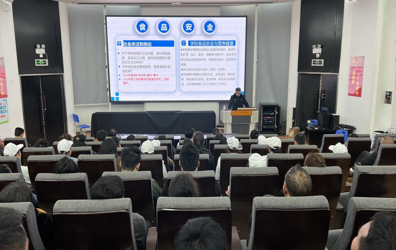 开学前夕,为进一步提升校内从业人员的食品安全意识与消防应急能力,全面夯实校园安全根基,2026年2月25日,学院后勤处联合保卫处组织开展校内从业人员食品安全暨消防知识培训。