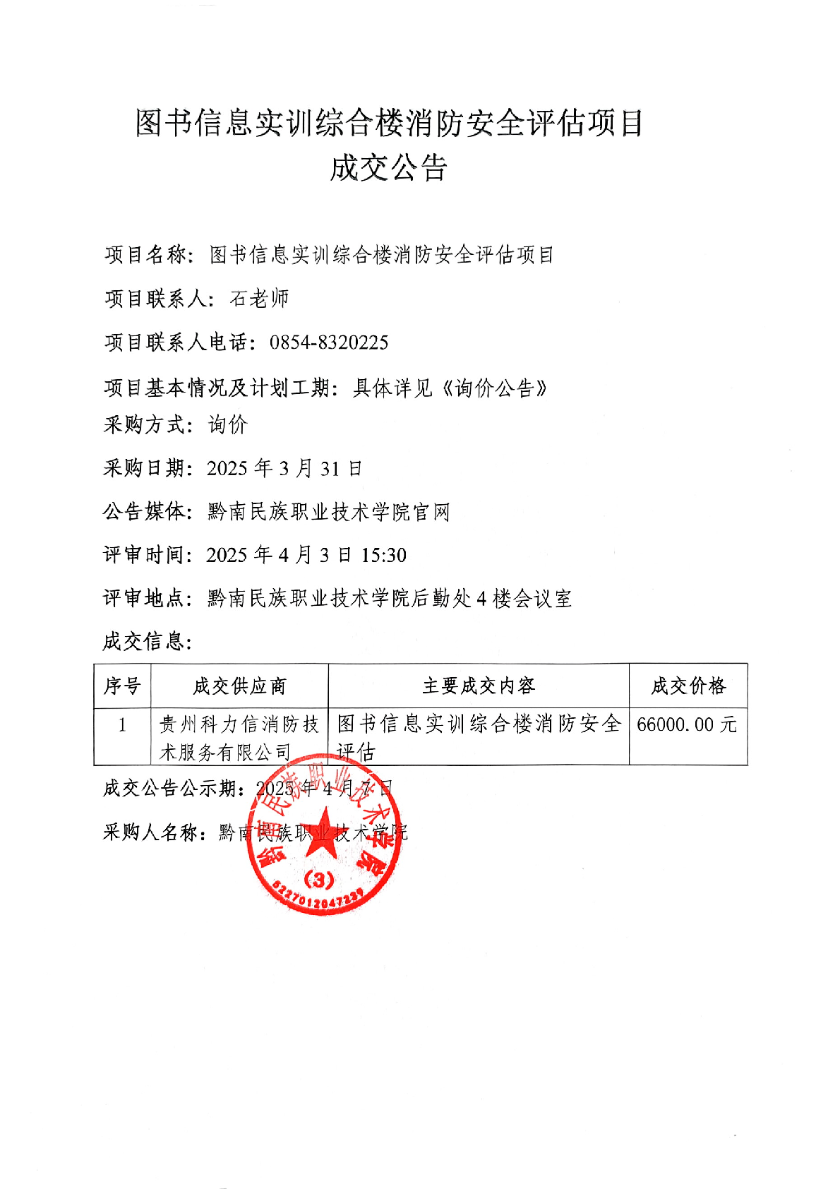 图书信息实训综合楼消防安全评估项目成交公告