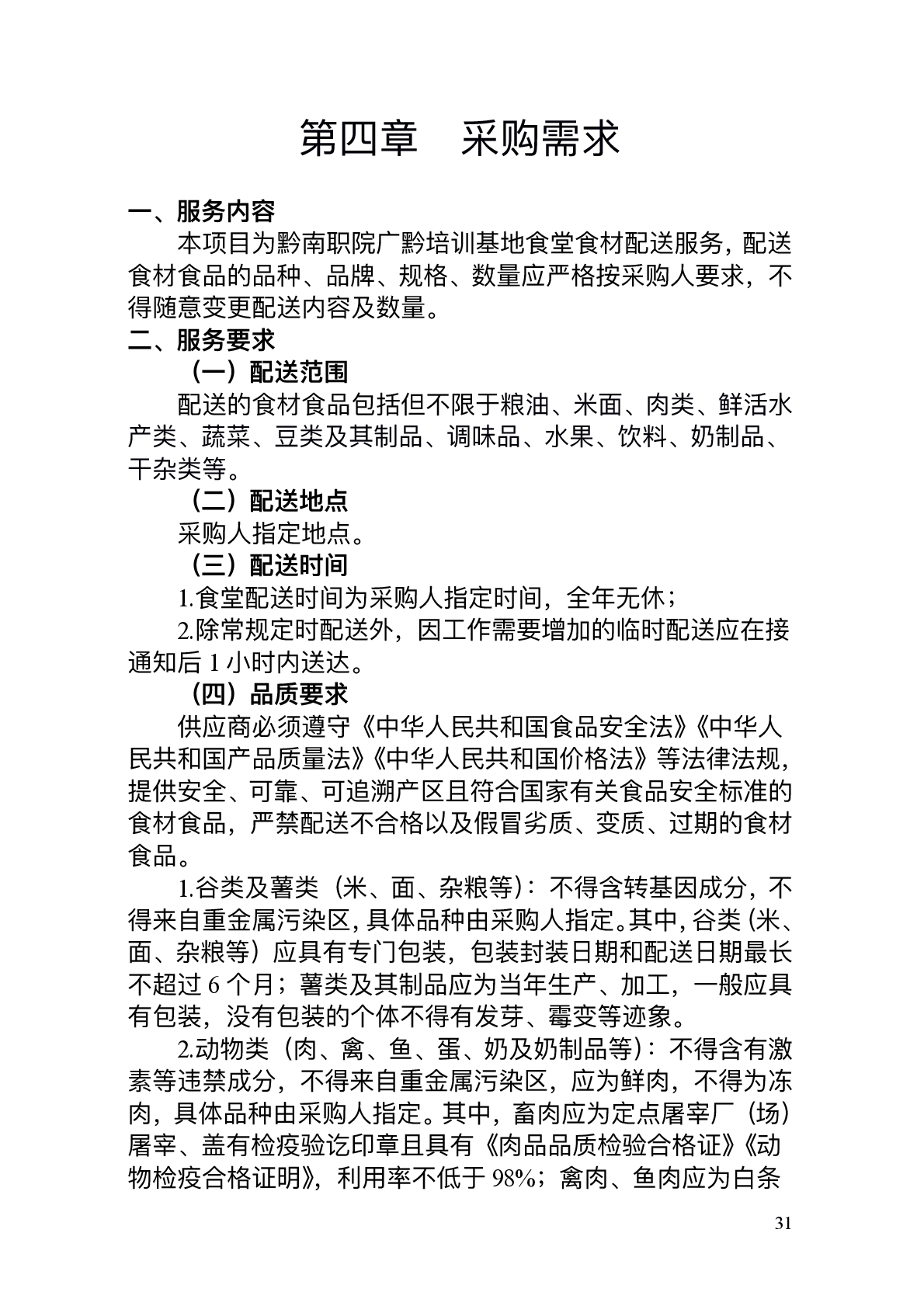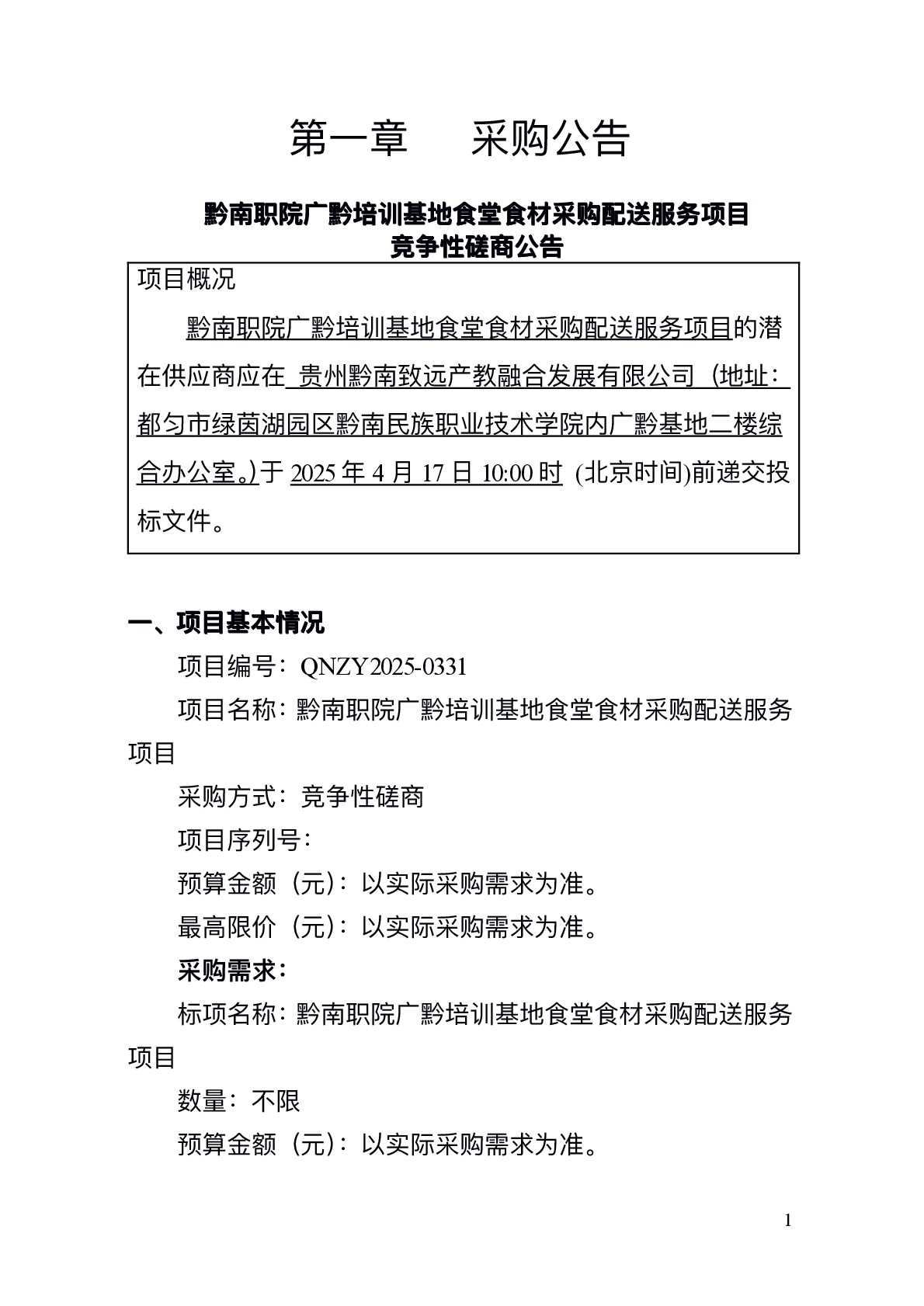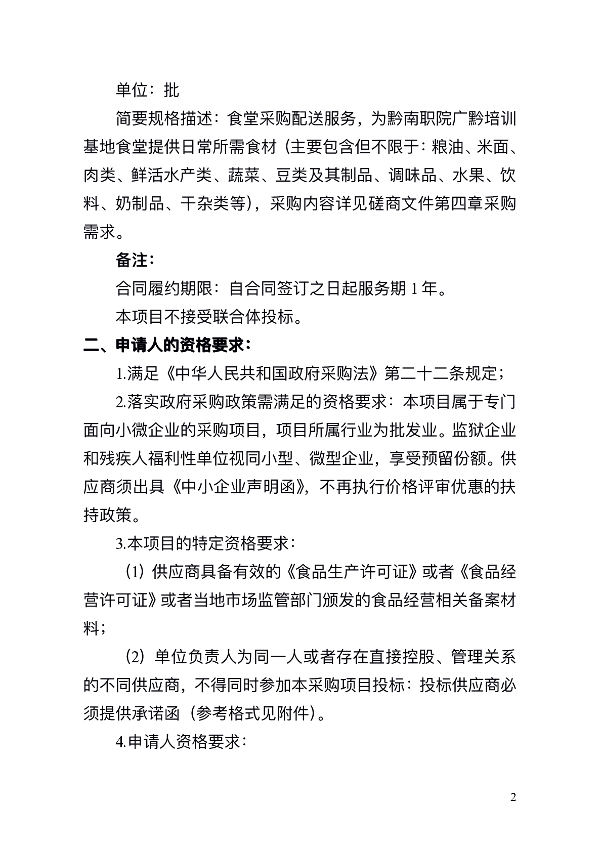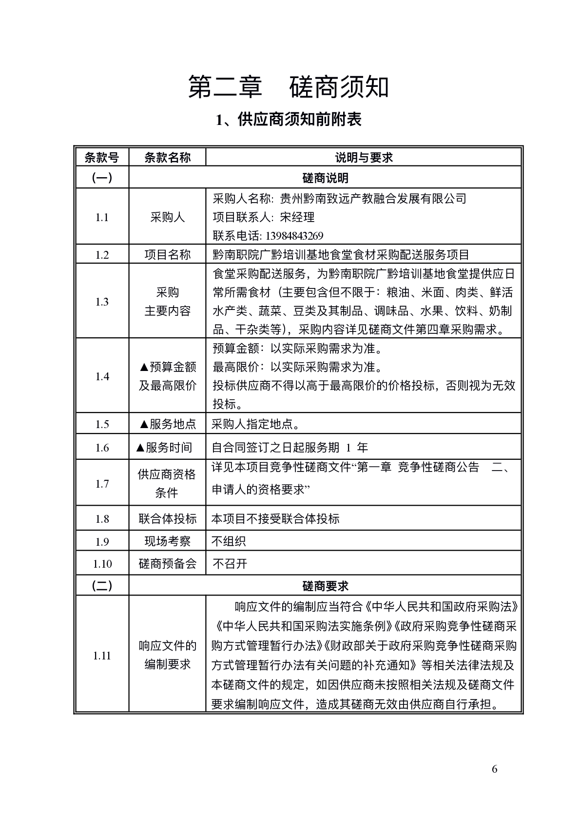 黔南职院广黔培训基地食堂食材采购配送服务项目竞争性磋商文件