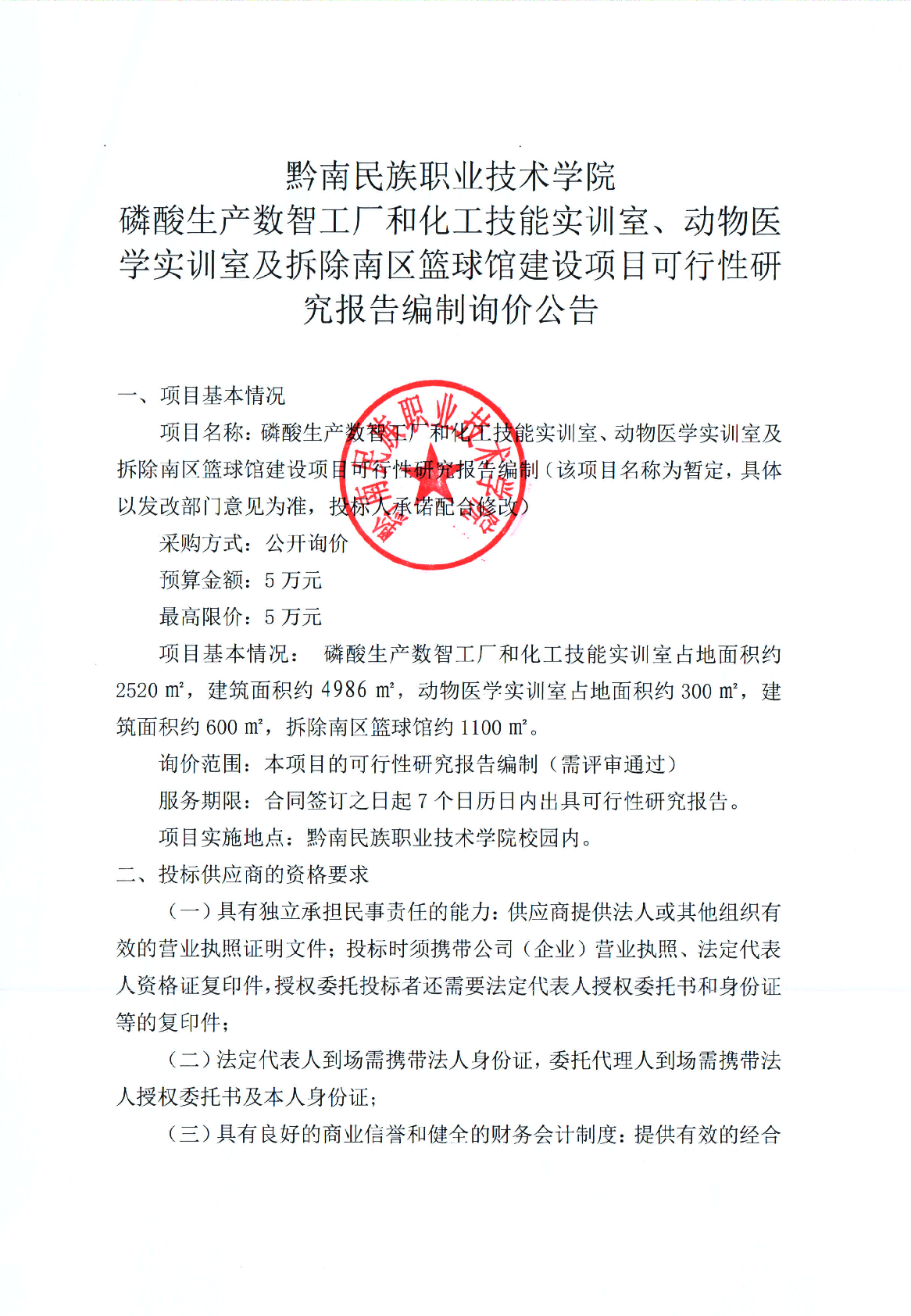 437ccm必赢国际磷酸生产数智工厂和化工技能实训室、动物医学实训室及拆除南区篮球馆建设项目可行性研究报告编制询价公告