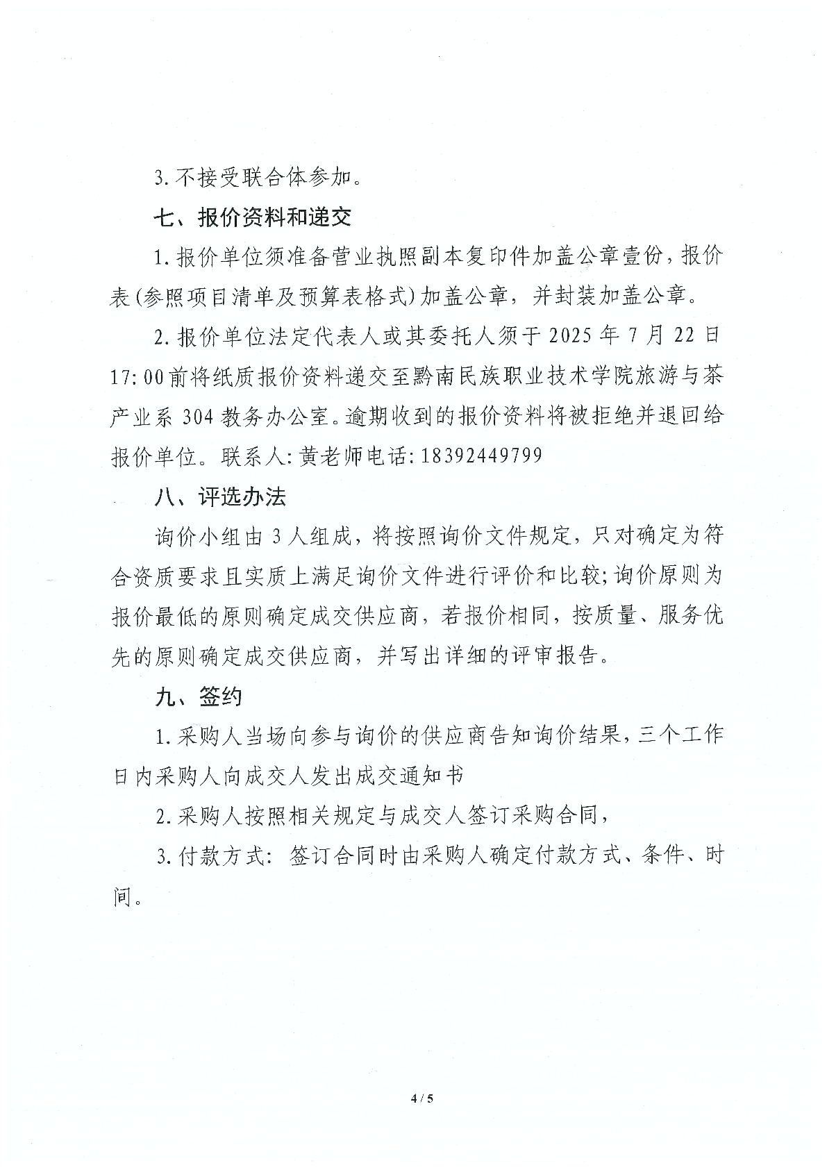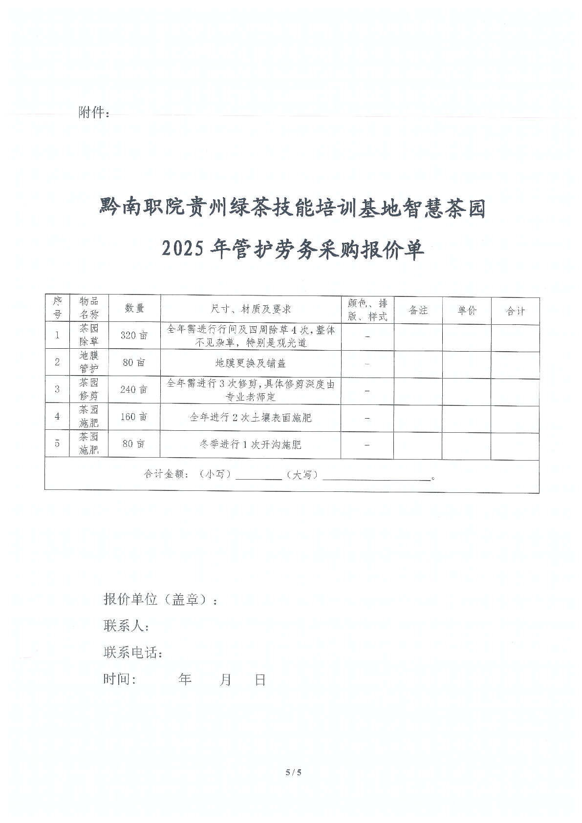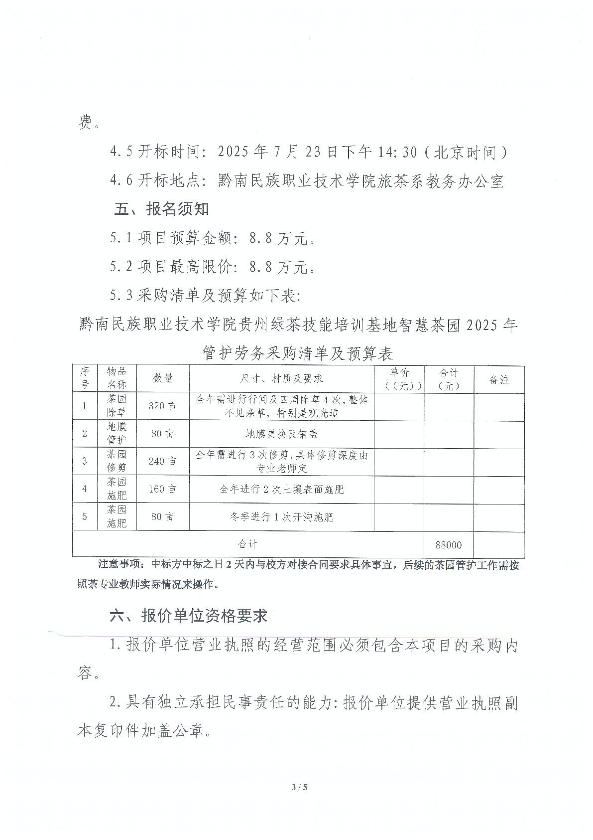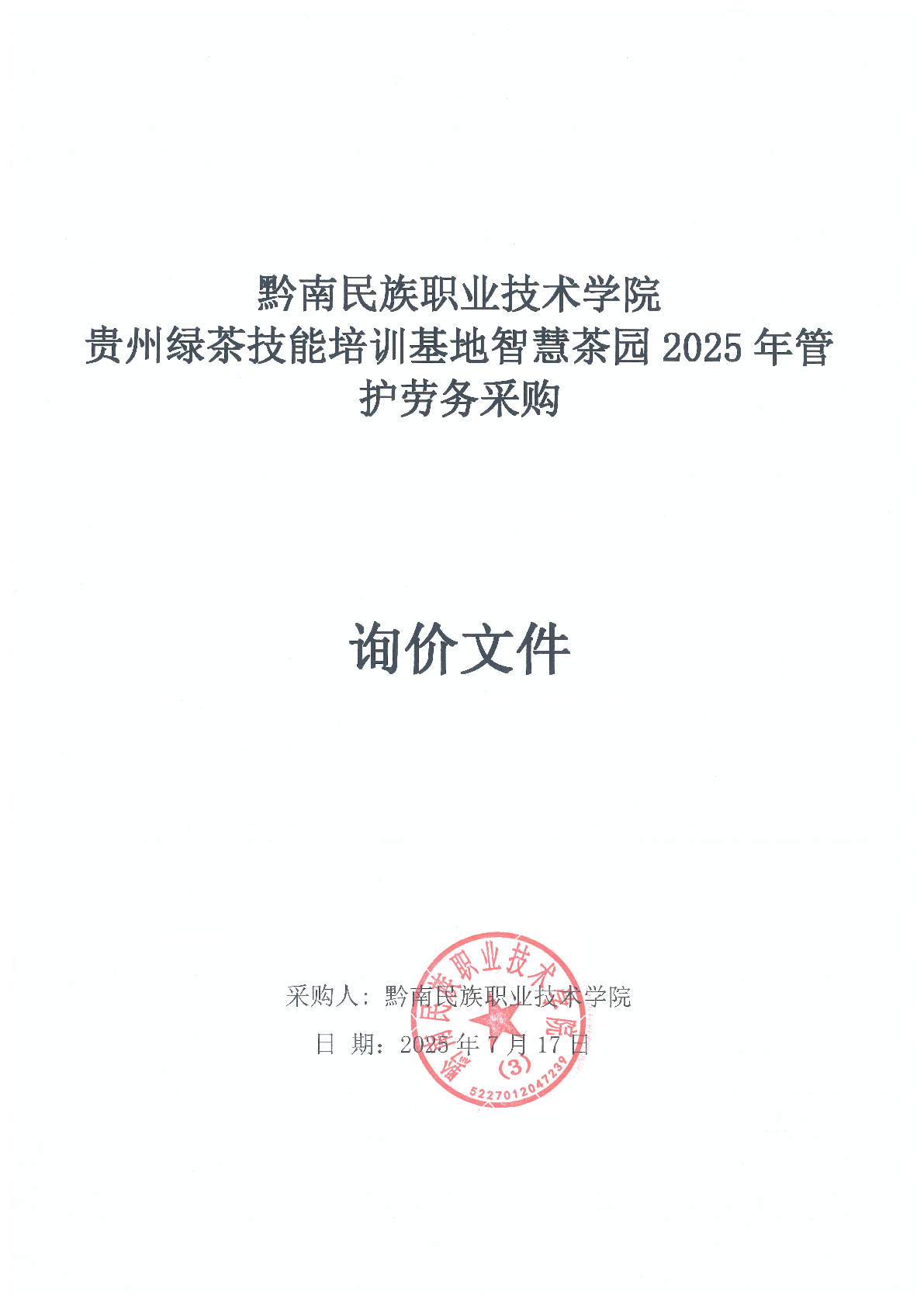黔南职院贵州绿茶技能培训基地智慧茶园2025年管护劳务采购询价文件