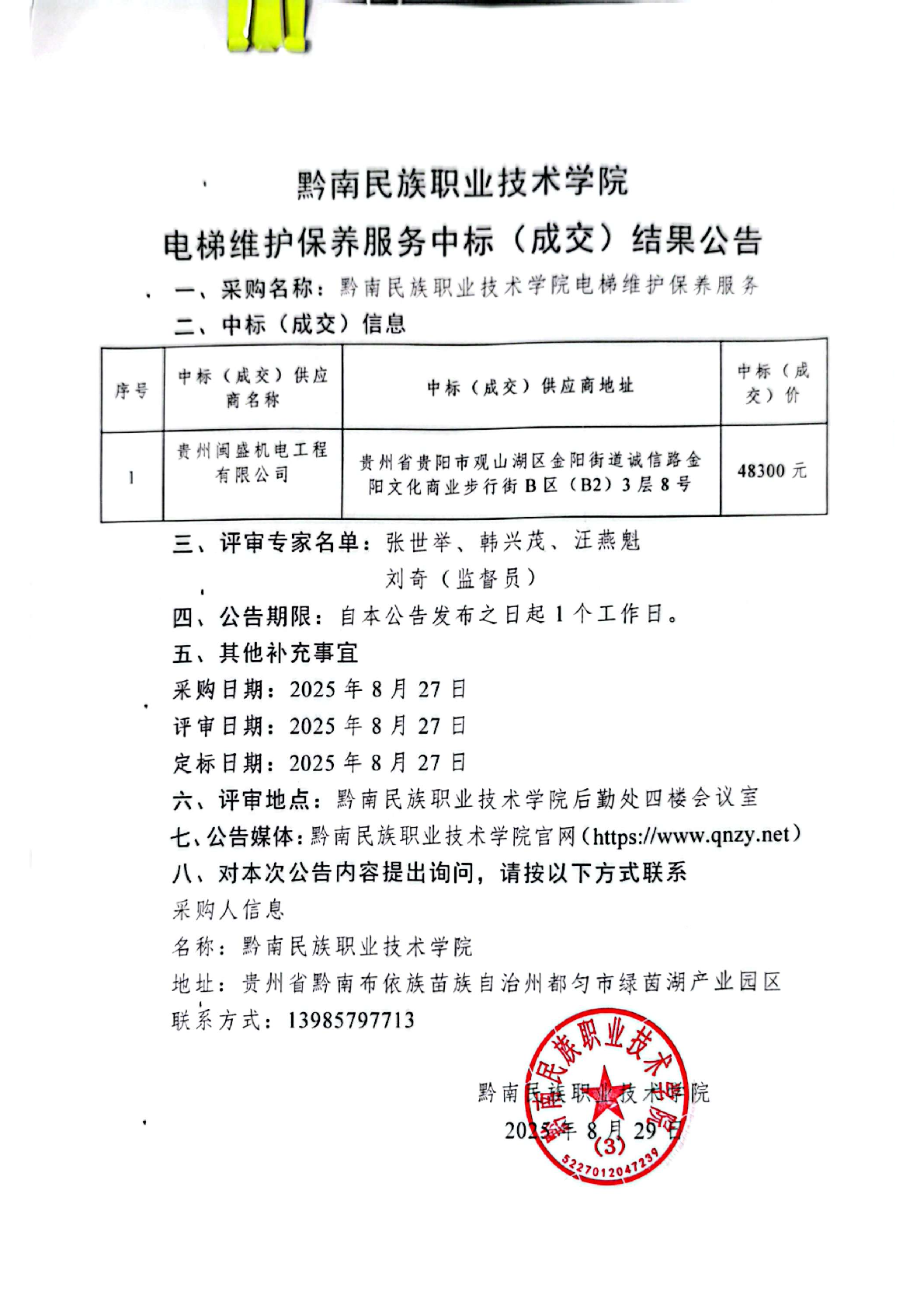 437ccm必赢国际 电梯维护保养服务中标(成交)结果公告