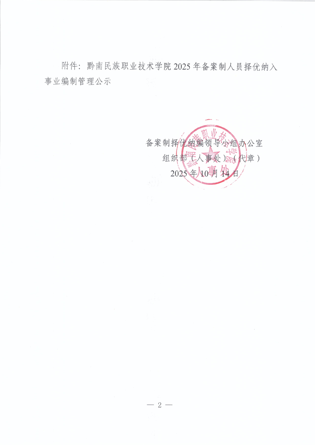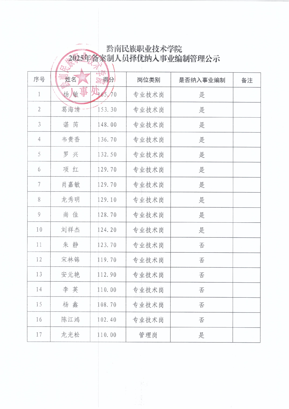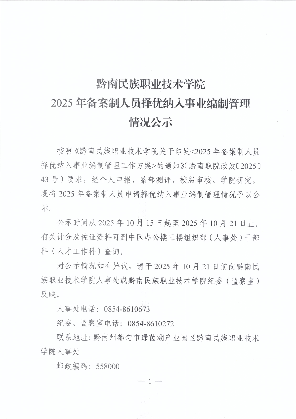按照《437ccm必赢国际关于印发<2025年备案制人员择优纳入事业编制管理工作方案>的通知》(黔南职院政发〔2025〕43号)要求,经个人申报、系部测评、校级审核、学院研究,现将2025年备案制人员申请择优纳入事业编制管理情况予以公示。