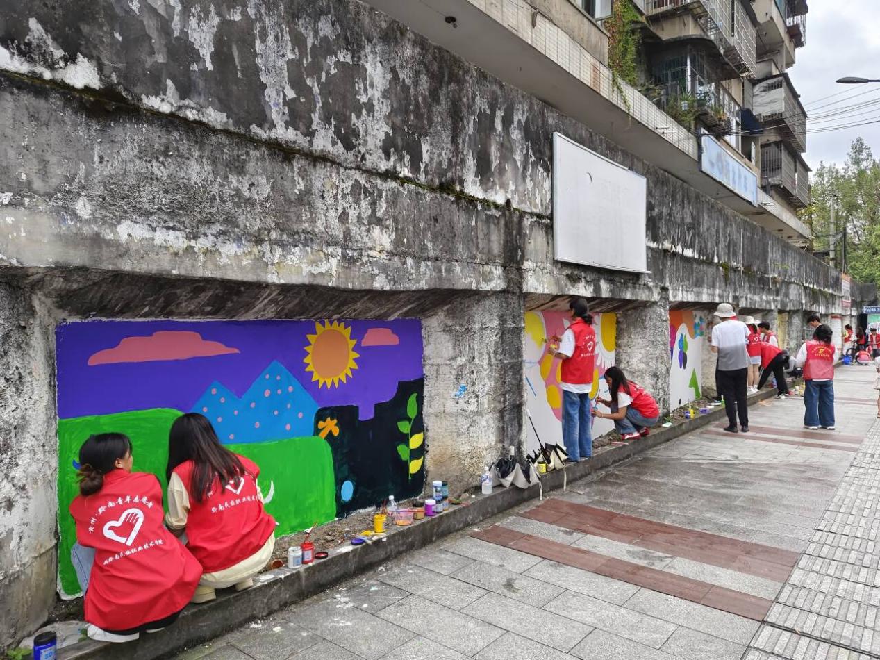 2025年8月22日“伴星同行,爱在红星”志愿服务队赴都匀市红星社区开展公益墙绘活动。