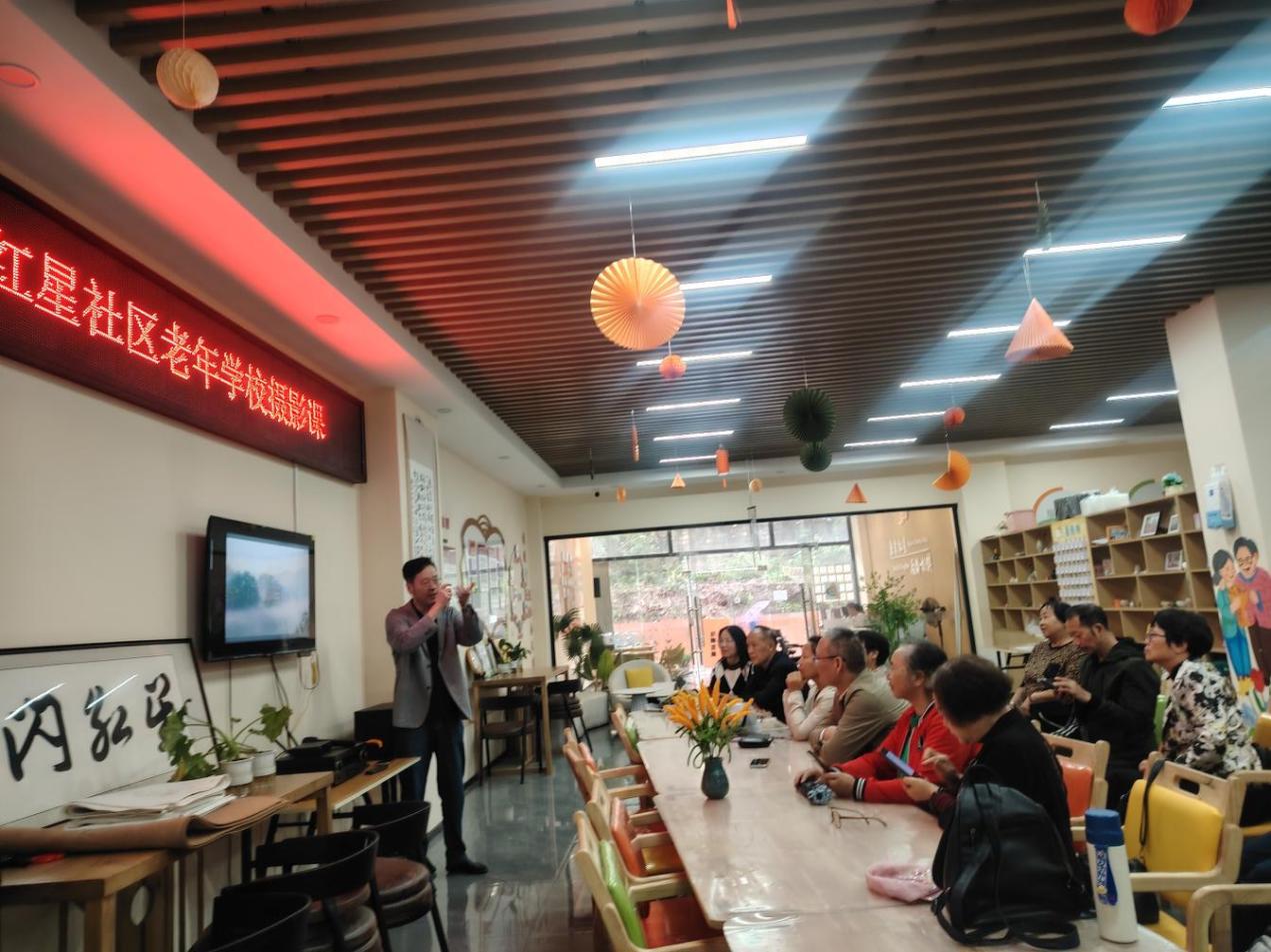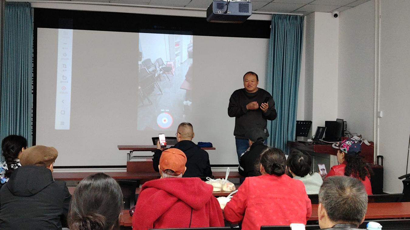 图5:2025年9月26日下午,黔南职院建筑系姜卫军老师深入都匀市红星社区开展“光影赋能 幸福满格”摄影培训活动,为辖区20余位社区工作者、摄影爱好者以及社区居民举办手机摄影公益培训。