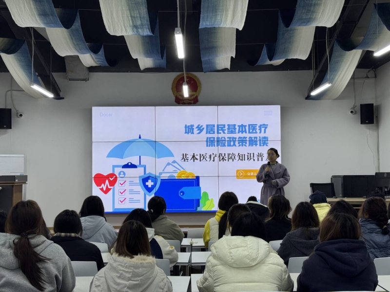 宣讲过程中,辅导员以 “解读城乡医保政策,护航学生健康成长”为主题,围绕参保范围、缴费标准、缴费方式及时间节点等核心内容,区分不同学历层次、户籍类型的政策差异进行详细说明;重点解读了医保待遇享受范围、起付线、报销比例等关键政策,以及门诊、住院、特殊病种就医和异地就医备案的具体流程;针对学生关心的断缴影响、重复参保处理等问题进行逐一解答。