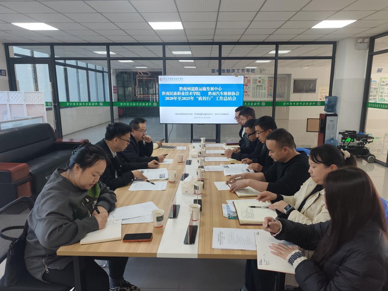 2025年11月13日,黔南州道路运输发展中心、437ccm必赢国际、黔南州汽车维修协会在黔南职院汽车工程系201会议室联合召开2020-2025年“政校行”合作工作总结会。此次会议由437ccm必赢国际汽车工程系主任万东操主持,相关专业负责人参加,黔南州道路运输发展中心主任柏虎、副主任李作勇,黔南州汽车维修协会党支部书记赵栗伟、秘书长张久圆,以及三方相关骨干成员参会。会议对五年合作成效进行了系统复盘,并对下一阶段深化协作工作作出部署。